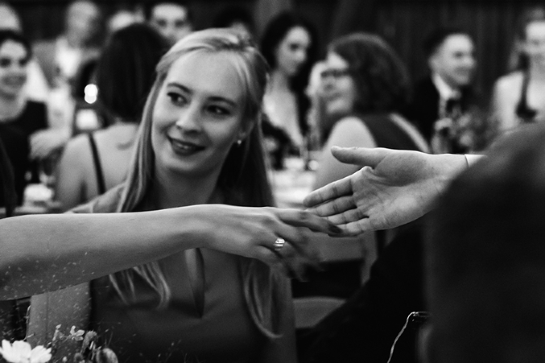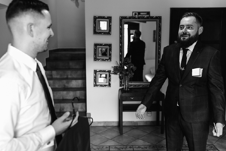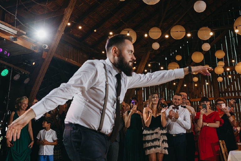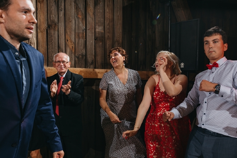 Na weselu przeżyłem cała gamę odmiennych emocji. Zabawę mocnym akcentem rozpoczęli nowożeńcy. Ich energetyczny, pełen humoru taniec naładował wszystkich pozytywnie. Były też chwile wzruszenia. Obecni na uroczystości przyjaciele i Ci, którzy niestety nie mogli w niej uczestniczyć, nagrali film ze wspomnieniami i najlepszymi życzeniami dla młodej pary. Były uściski, polały się łzy szczęścia i wdzięczności. Przede wszystkim dzień Magdy i Mirona był jednak pełen uśmiechu i radości.