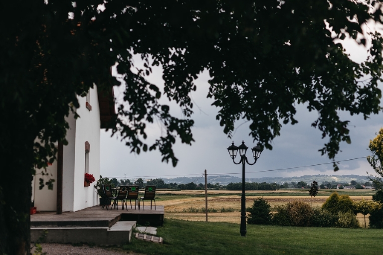 Gdy przyjechałem na wesele Magdy i Mirona w Folwarku Wiązy poczułem się trochę jak przed laty. Jako mały chłopiec odwiedzałem prababcię w niewielkiej wiosce. Karmiłem kury, jeździłem konno i spędzałem całe dnie biegając na zewnątrz czy pomagając w gospodarstwie. Od razu w myślach wróciły do mnie też wszystkie pyszności, którymi się zajadałem – świeży chleb ze smalcem, swojskie konfitury i mleko prosto od krowy. Myślę, że sporo gości miało podobne odczucia. Folwark tworzą zabudowania sprzed 150 lat leżące u podnóża Beskidu Wyspowego. Otaczają go dwa hektary zieleni, co jeszcze bardziej dodaje mu uroku. To idealne miejsce na rustykalne wesele w stodole oraz świetne miejsce, żeby się zrelaksować po ciężkim, pracowitym tygodniu.