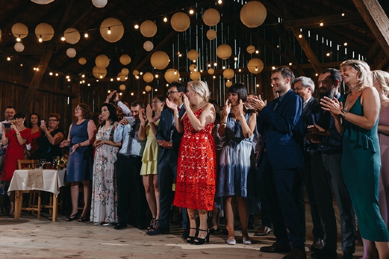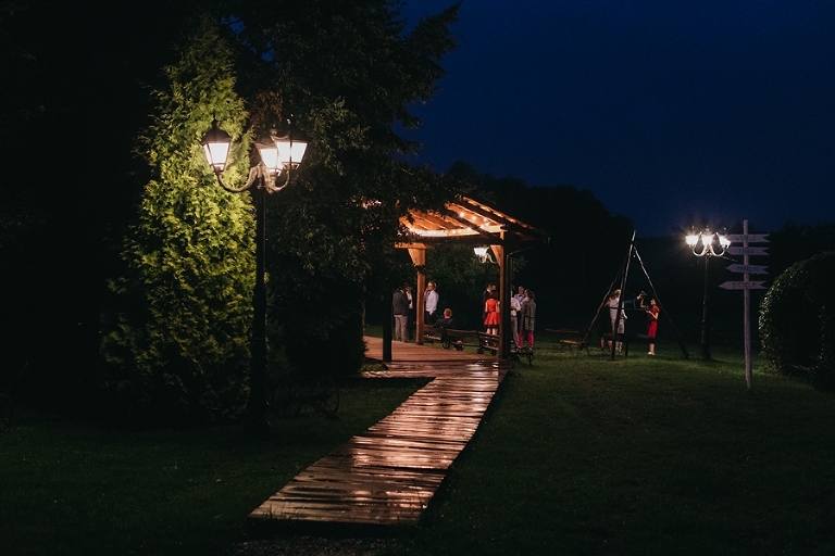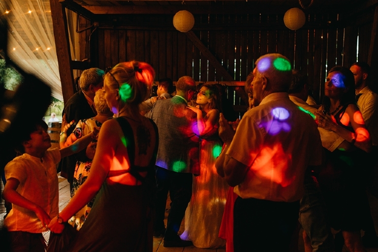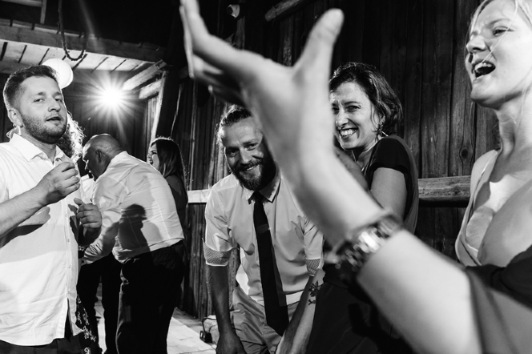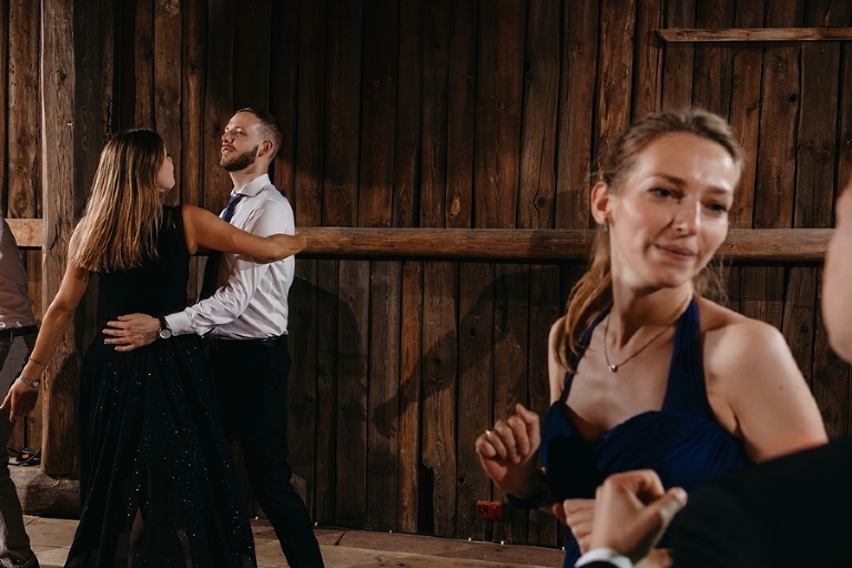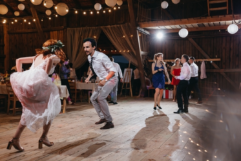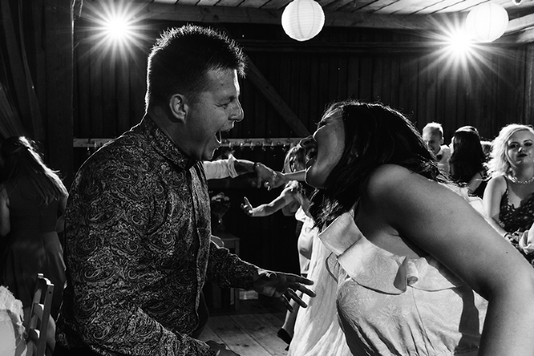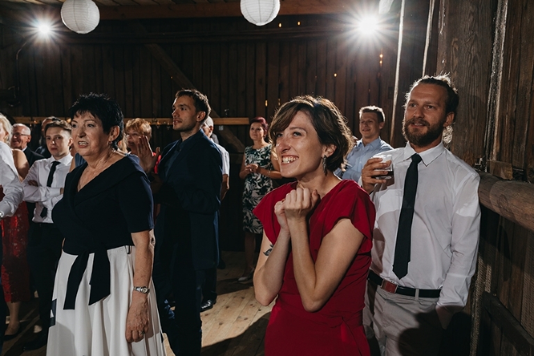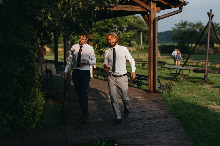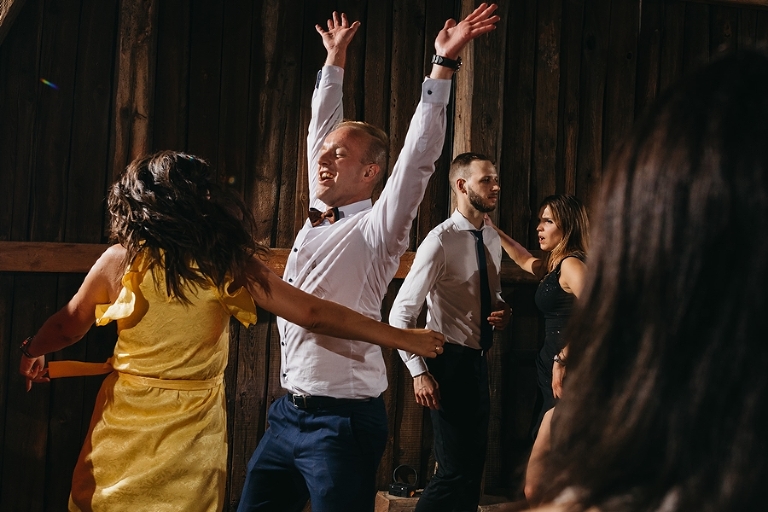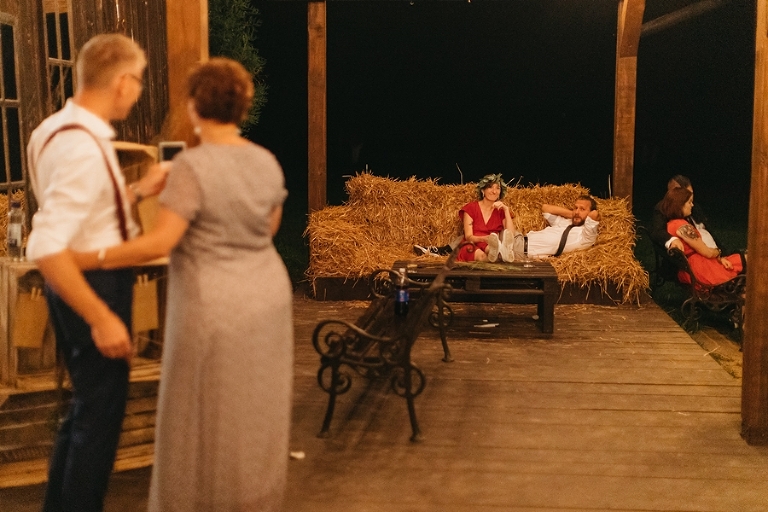 Wspomnienia, wspomnieniami, spokój, spokojem, ale jednak wesele to przede wszystkim zabawa. Mimo sielankowego krajobrazu goście szaleli niestrudzenie na parkiecie aż do białego rana, a przodowali im państwo młodzi, którym uśmiech nie schodził z twarzy ani na moment. Kto chciał na chwilę odsapnąć, mógł rozłożyć się na wielkiej kanapie ze słomy czy przysiąść na ławkach, ale nie były to punkty zbytnio oblegane. Panowała swojska atmosfera biesiady, która przeplatała się z klimatem dobrej domówki. Wszyscy czuli się swobodnie, próżno było szukać objawów skrępowania.