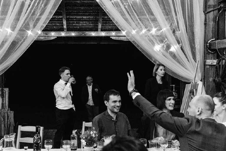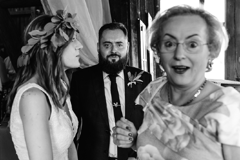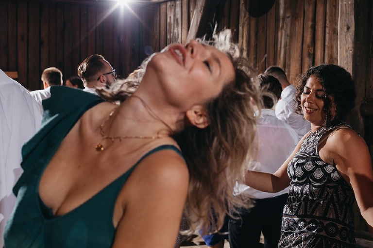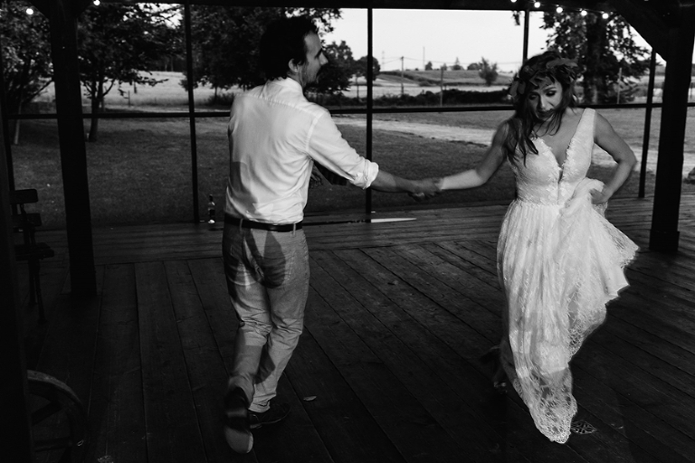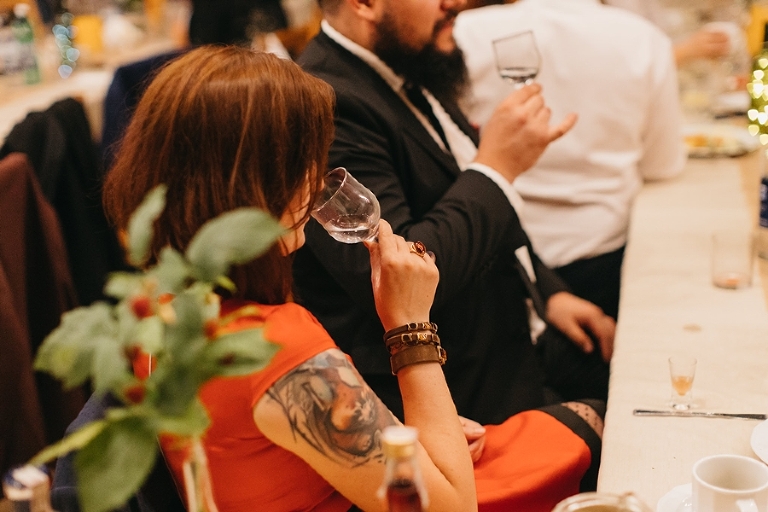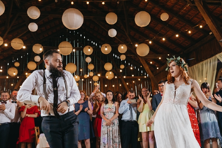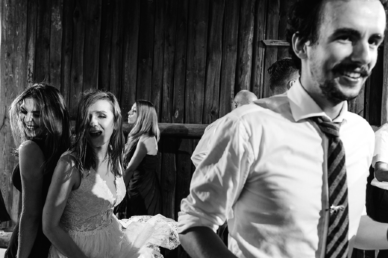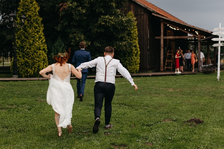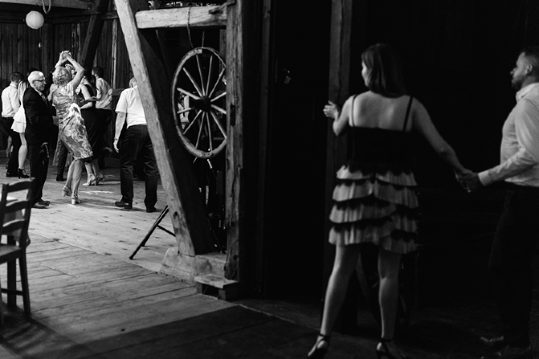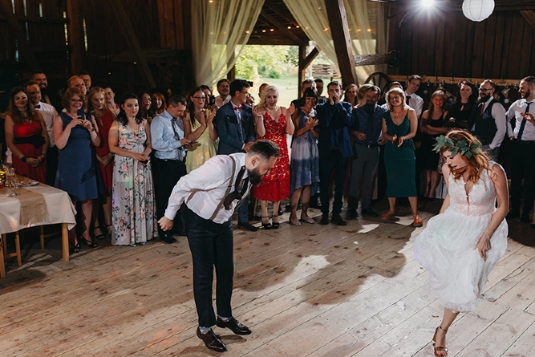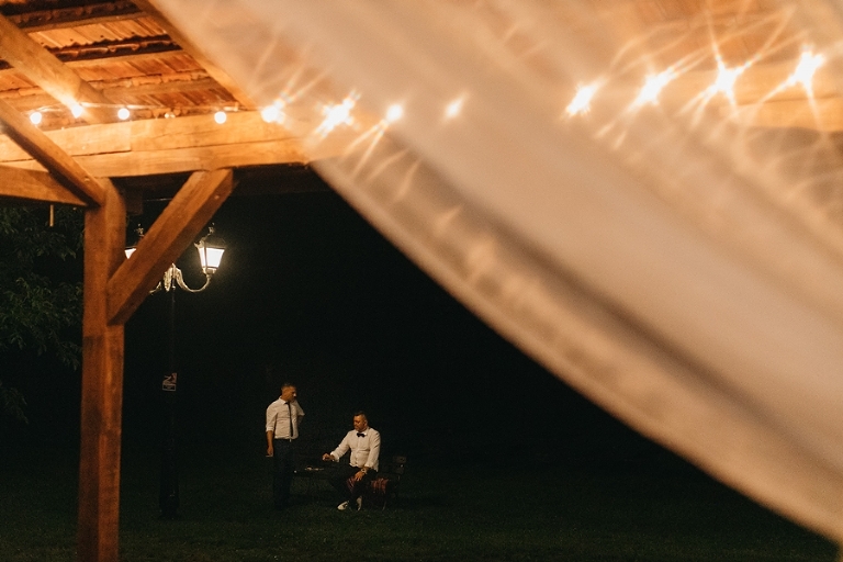 Wspomnienia, wspomnieniami, spokój, spokojem, ale jednak wesele to przede wszystkim zabawa. Mimo sielankowego krajobrazu goście szaleli niestrudzenie na parkiecie aż do białego rana, a przodowali im państwo młodzi, którym uśmiech nie schodził z twarzy ani na moment. Kto chciał na chwilę odsapnąć, mógł rozłożyć się na wielkiej kanapie ze słomy czy przysiąść na ławkach, ale nie były to punkty zbytnio oblegane. Panowała swojska atmosfera biesiady, która przeplatała się z klimatem dobrej domówki. Wszyscy czuli się swobodnie, próżno było szukać objawów skrępowania.